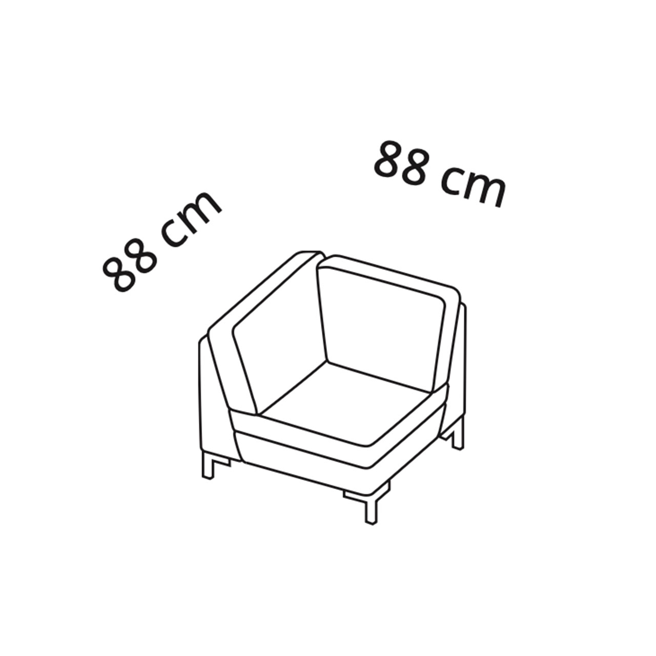 - Hinweis: Sessel sowie Elemente ohne Seitenteil (Hocker, Bänke, Zwischen- und Eckelemente sowie Openends) werden serienmäßig ohne Armlehnkissen geliefert.