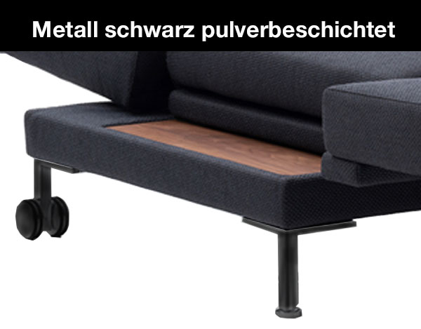 - Winkelfuß Metall schwarz pulverbeschichtet, höhenverstellbar, hinten mit Rollen