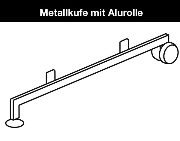- Metallkufe mit Tellerfuß vorne und Alurollen hinten (Aufpreis), nicht höhenverstellbar, Sitzhöhe 42 cm